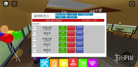 6、服務員的上限為六人,同樣可以通過消耗游戲幣進行升級,高等級的服務員效率更高,能獲得更高的服務評價,因此,在有限的服務人數下,玩家應注重餐廳的服務質量而非數量。